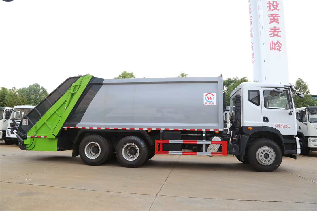 上裝配置:垃圾箱容積:18,20方選擇,新款平面弧形廂體,廂體材料為武鋼優(yōu)質(zhì)碳鋼,PLC一鍵操作**,手電一體操作模式,兩側(cè)雙電控,帶駕駛室內(nèi)操作,底板支撐加強(qiáng),雙向壓縮,開放式易清潔污水箱。壓縮式垃圾車采用機(jī)電液一體化技術(shù),借助機(jī)、電、液聯(lián)合自動(dòng)**系統(tǒng)、電腦**、手動(dòng)操作系統(tǒng),通過(guò)填裝器和推鏟等專用裝置,實(shí)現(xiàn)垃圾倒入、壓碎或壓扁、強(qiáng)力裝填,把垃圾擠入車廂并壓實(shí)和推卸,污水全部進(jìn)入污水廂,解決了垃圾運(yùn)輸過(guò)程中的二次污染的問題。壓縮式垃圾車具有自動(dòng)反復(fù)壓縮以及蠕動(dòng)壓縮功能,壓縮比高、密封性好、裝載量大﹑操作方便、環(huán)保性好﹑整車?yán)霉β矢叩葍?yōu)點(diǎn)。作業(yè)自動(dòng)化,垃圾收集方式簡(jiǎn)便、高效。后翻轉(zhuǎn)機(jī)構(gòu)選裝:1、掛塑料桶式翻轉(zhuǎn)機(jī)構(gòu);2、掛鐵桶式翻轉(zhuǎn)機(jī)構(gòu);3、擺臂式翻轉(zhuǎn)機(jī)構(gòu); 4、簸箕斗式翻轉(zhuǎn)機(jī)構(gòu)。