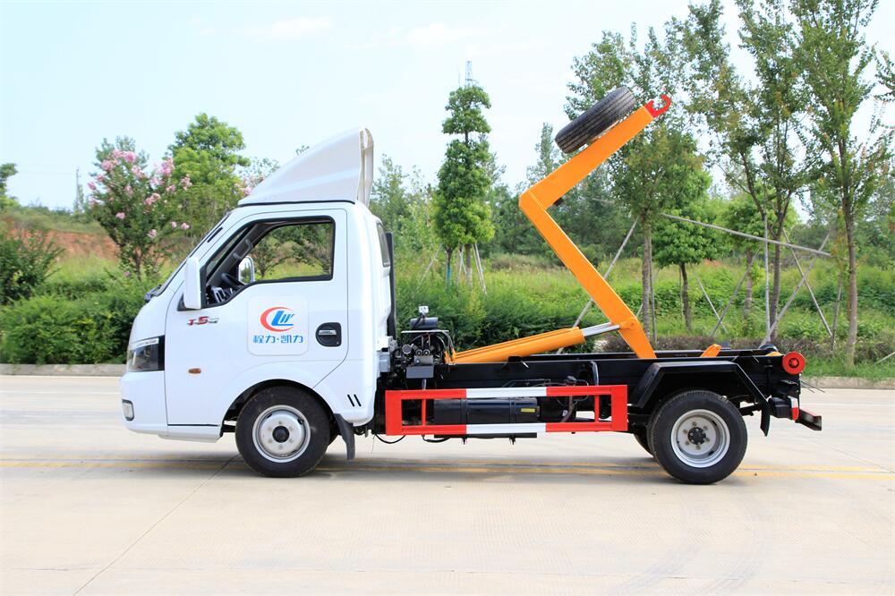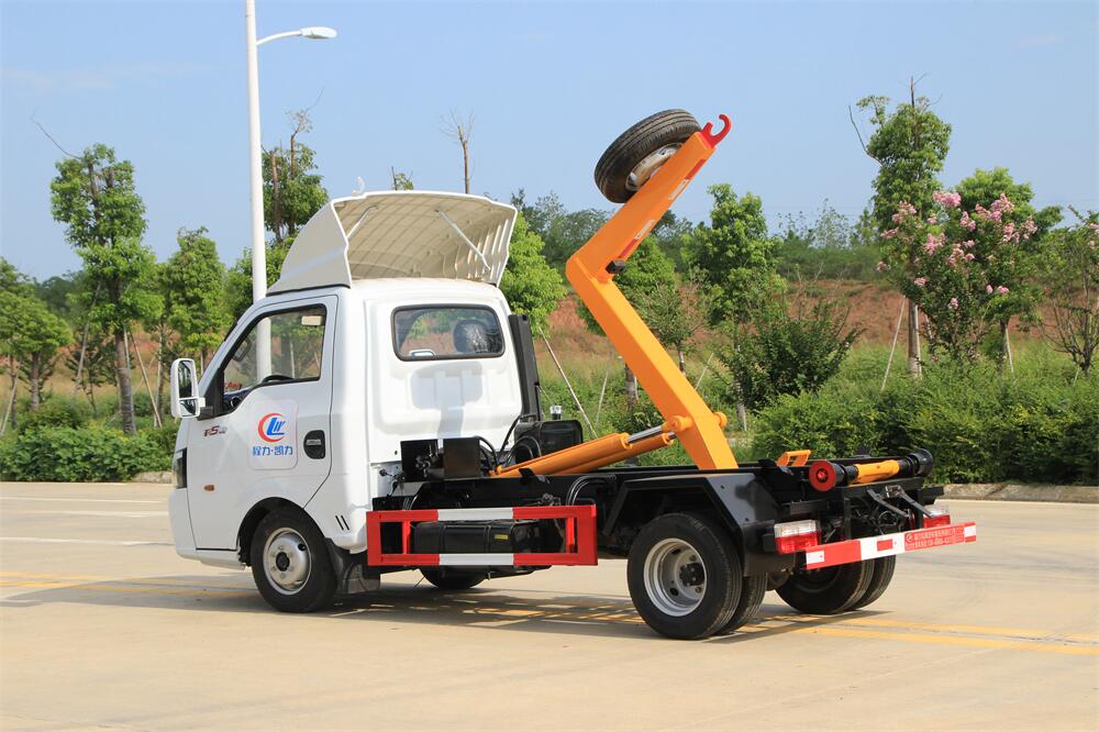 勾臂式垃圾車(車廂可卸式垃圾車)介紹: 車廂可卸式垃圾車又叫拉臂式垃圾車,是一種采用高新設(shè)計(jì)可伸縮的鉤臂,實(shí)現(xiàn)垃圾廂的二次吊裝,自吊上放下,可自行傾倒垃圾的環(huán)衛(wèi)設(shè)備。 拉臂式垃圾車結(jié)構(gòu)簡單,操作穩(wěn)定方便,裝卸效率高,機(jī)械化程度高,節(jié)省人力。鉤臂垃圾車一車可帶多個(gè)垃圾廂,在裝卸的運(yùn)輸過程中可有效地避免二次污染。 拉臂垃圾車采用高新設(shè)計(jì)可擺動(dòng)的鉤臂,垃圾箱由框架、開啟油缸、滑輪、后門和若干加強(qiáng)框架與鋼板焊接而成。調(diào)換貨廂快捷方便,貨廂上帶蓋(倒垃圾時(shí)可翻開),鉤臂垃圾車?yán)鴰w可選用碳鋼、不銹鋼材質(zhì)、內(nèi)部采取環(huán)氧樹脂防腐處理,改裝部分與原車底盤為可分離式,維修方便且保持了原車的機(jī)動(dòng)性及行駛性能。