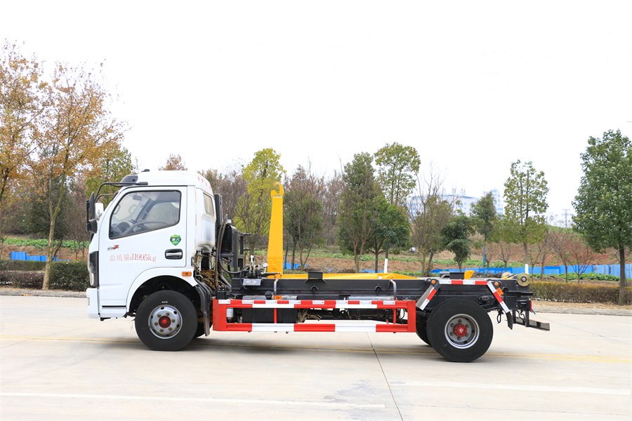 勾臂式垃圾車(chē)(車(chē)廂可卸式垃圾車(chē))介紹: 車(chē)廂可卸式垃圾車(chē)又叫拉臂式垃圾車(chē),是一種采用高新設(shè)計(jì)可伸縮的鉤臂,實(shí)現(xiàn)垃圾廂的二次吊裝,自吊上放下,可自行傾倒垃圾的環(huán)衛(wèi)設(shè)備。 拉臂式垃圾車(chē)結(jié)構(gòu)簡(jiǎn)單,操作穩(wěn)定方便,裝卸效率高,機(jī)械化程度高,節(jié)省人力。鉤臂垃圾車(chē)一車(chē)可帶多個(gè)垃圾廂,在裝卸的運(yùn)輸過(guò)程中可有效地避免二次污染。 拉臂垃圾車(chē)采用高新設(shè)計(jì)可擺動(dòng)的鉤臂,垃圾箱由框架、開(kāi)啟油缸、滑輪、后門(mén)和若干加強(qiáng)框架與鋼板焊接而成。調(diào)換貨廂快捷方便,貨廂上帶蓋(倒垃圾時(shí)可翻開(kāi)),鉤臂垃圾車(chē)?yán)鴰w可選用碳鋼、不銹鋼材質(zhì)、內(nèi)部采取環(huán)氧樹(shù)脂防腐處理,改裝部分與原車(chē)底盤(pán)為可分離式,維修方便且保持了原車(chē)的機(jī)動(dòng)性及行駛性能。