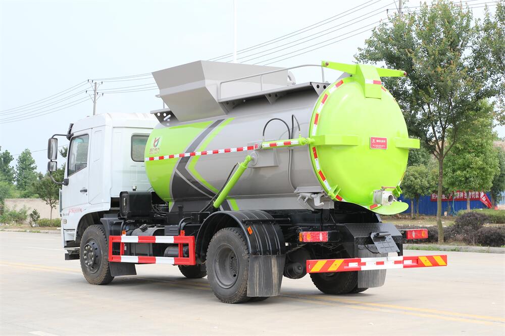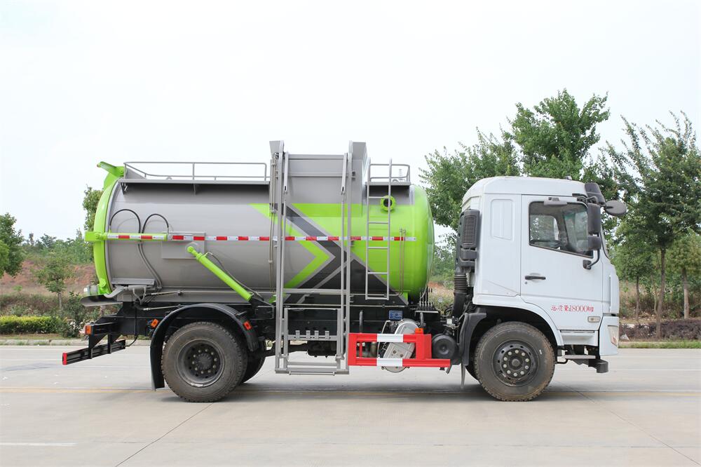 上裝配置:罐體容積10m3,配備120L/240L掛桶提升翻轉(zhuǎn)機(jī)構(gòu),液壓系統(tǒng),后蓋液壓鎖緊開(kāi)啟,罐體可以舉升自卸,尾部帶自流閥;用于運(yùn)輸液態(tài)垃圾,其特點(diǎn)操作簡(jiǎn)單,密封性好,無(wú)泄漏,無(wú)異味;可選裝固液分離功能,推板擠壓功能,常用于餐館的垃圾轉(zhuǎn)運(yùn)處理。