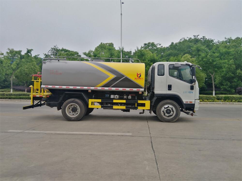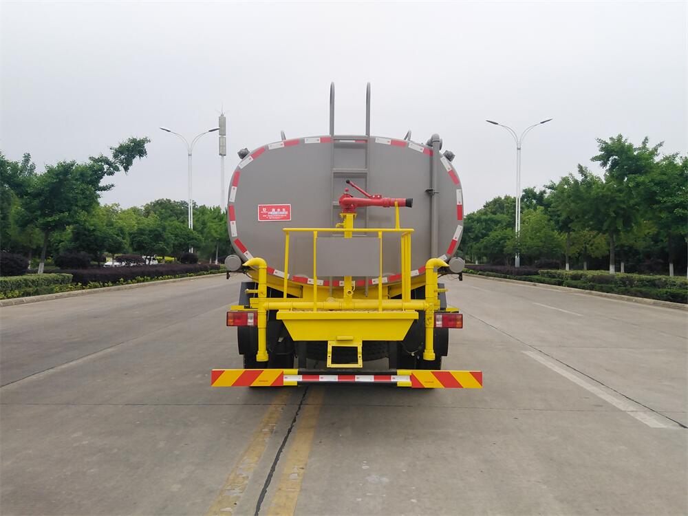 灑水車前裝有鴨形噴嘴或圓頭沖嘴,后面裝有圓柱開灑水噴嘴或蓮蓬頭噴嘴,后部有一工作平臺,裝配有水炮。后部還可裝8個(gè)噴嘴(選裝)。