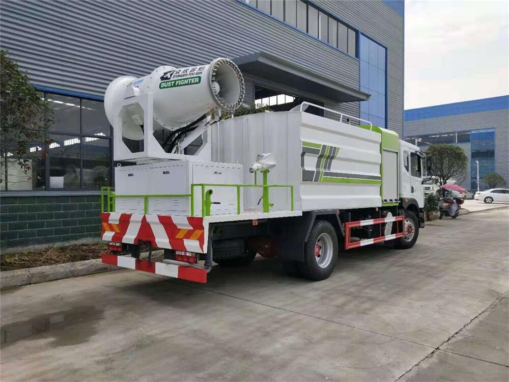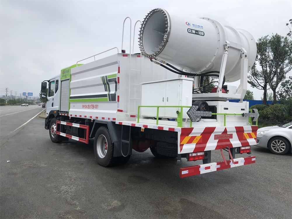 上裝配置:罐體容積為 12立方,選配風(fēng)送式霧炮機(jī)組射程30米、40米、50米、60米、80米、100米、120米霧炮,罐體鋼板為4mm碳鋼Q235材質(zhì),罐內(nèi)隔板具有防波作用,以減輕汽車行駛時罐體液體沖擊,罐體及整車外形尺寸按照公告。帶大功率專用灑水泵,泵可自吸自排,整車前沖、后灑、側(cè)噴、帶65消防接口,后平臺配CLW-50、CLW-60、CLW-80、CLW-100、CLW-120型風(fēng)送式霧炮機(jī)組;罐體前封頭配大功率柴油發(fā)電機(jī)組;前封頭帶水位計,后平臺主管路帶1寸澆花接口,后爬梯。帶兩根輸水管及陰陽端。罐體顏色:銀/灰/綠,罐體兩側(cè)噴“多功能抑塵車”字樣,貼反光標(biāo)示。