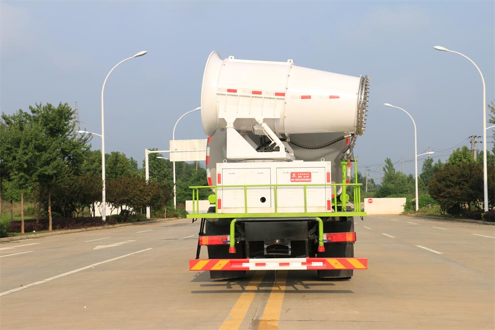 上裝配置:罐體容積為 12立方,選配風(fēng)送式霧炮機(jī)組射程30米、40米、50米、60米、80米、100米、120米霧炮,罐體鋼板為4mm碳鋼Q235材質(zhì),罐內(nèi)隔板具有防波作用,以減輕汽車行駛時(shí)罐體液體沖擊,罐體及整車外形尺寸按照公告。帶大功率專用灑水泵,泵可自吸自排,整車前沖、后灑、側(cè)噴、帶65消防接口,后平臺(tái)配CLW-50、CLW-60、CLW-80、CLW-100、CLW-120型風(fēng)送式霧炮機(jī)組;罐體前封頭配大功率柴油發(fā)電機(jī)組;前封頭帶水位計(jì),后平臺(tái)主管路帶1寸澆花接口,后爬梯。帶兩根輸水管及陰陽端。罐體顏色:銀/灰/綠,罐體兩側(cè)噴“多功能抑塵車”字樣,貼反光標(biāo)示。