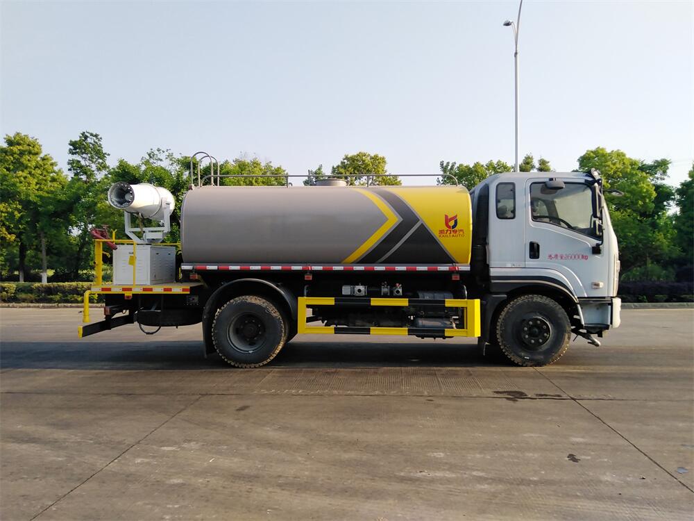 主要由發(fā)動機帶動變速箱,變速箱上安裝的取力器帶動灑水泵,灑水泵產生動力,將罐體內部的液體通過管網(wǎng)噴灑出去。工作范圍:自吸高度:≥7m,灑水寬度:≥14m,**大射程:≥28m;可調節(jié)成柱狀,射程≥28m;也可調節(jié)成霧狀,射程≥5m。