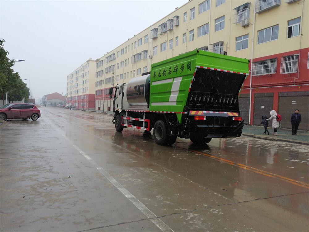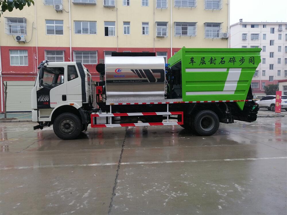 解放單橋同步碎石封層車工作實(shí)拍圖片