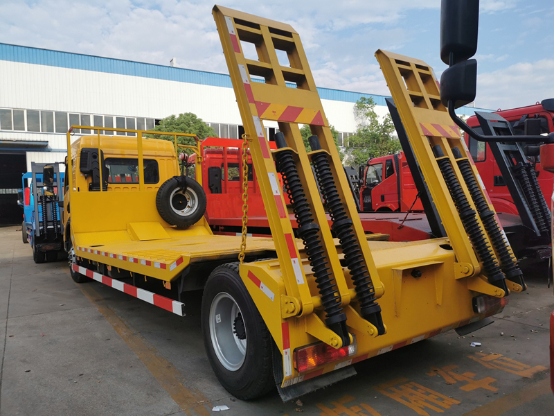 解放凹板單橋平板運(yùn)輸車 解放駕駛室 排放:國五新規(guī) 發(fā)動機(jī):錫柴4缸180馬力 變速箱:伊頓6檔變速箱 前后橋:145加強(qiáng)后橋 軸距:6.45米 輪胎:825-20鋼絲胎 大梁: 250雙大梁 整車對應(yīng)尺寸:7800*2550*2970 車型亮點(diǎn):ABS防抱死系統(tǒng) . 剎車間隙自動調(diào)整臂、防飛濺、前下防護(hù),北斗,GPRS行車記錄儀,國產(chǎn)ABS,電動門窗,空氣彈簧座椅,空調(diào)??衫?5噸以下挖機(jī)等設(shè)備。此產(chǎn)品**大的優(yōu)勢是離地低,離地僅90公分,更容易通過。 上裝采用五毫米花紋鋼板,整體凹梁設(shè)計(jì),加強(qiáng)雙簧爬梯,可拉15噸以下挖機(jī)。 可選裝配置:液壓全自動爬梯,折疊型加長型液壓全自動爬梯,可加裝兩邊伸展,一邊可伸縮30公分。
